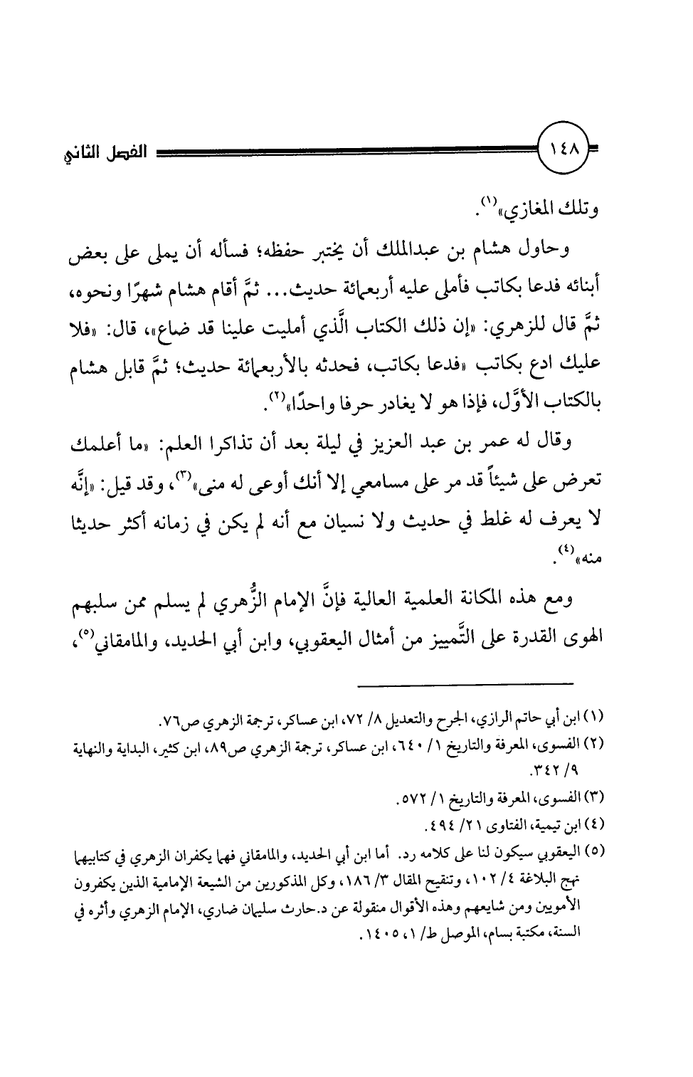 (2) الفسوى، المعرفة والتاريخ 1/ 0 64، ابن عساكر، ترجمة الزهرى ص 89، ابن كثير، البداية والنهاية