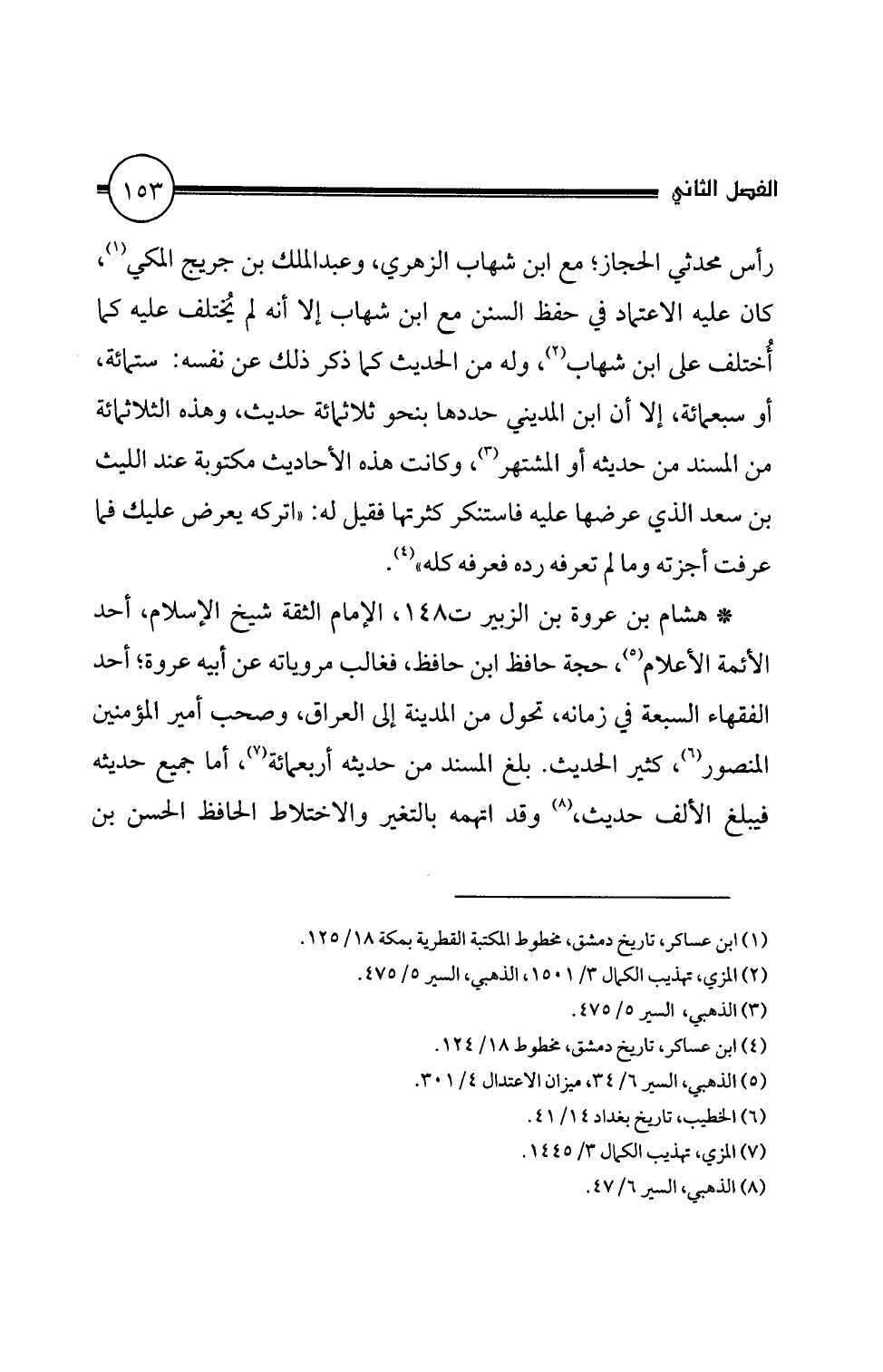 * هشام بن عروة بن الزبير ت 148، الإمام الثقة شيخ الإسلام، احد