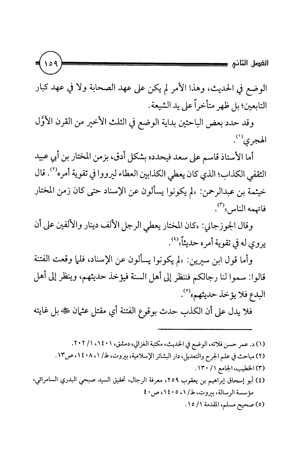 (1) د. عمر حسن فلاته، الوضع في الحديث، مكتبة الغزالي، دمشق، 1 0 4 1، 1/ 2 0 2.