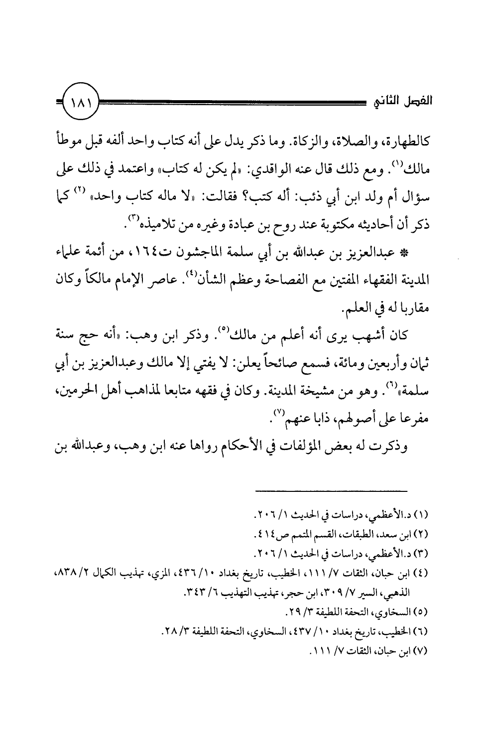 المدينة الفقهاء المفتين مع الفصاحة وعظم الشأن (4). عاصر الإمام مالكا وكان