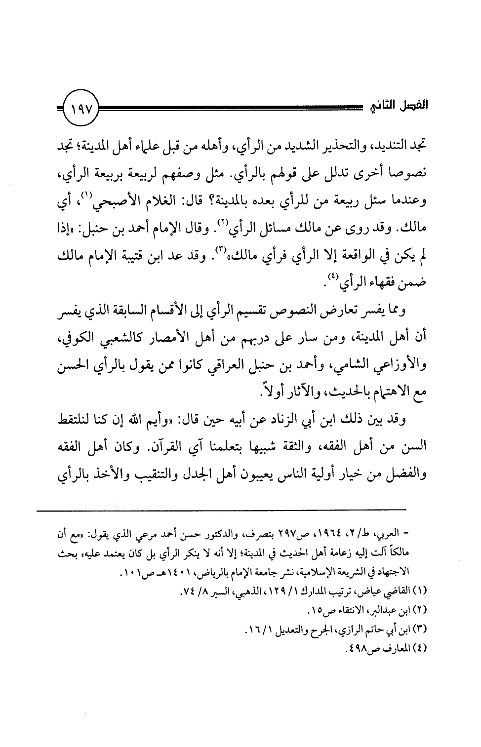 نصوصا اخرى تدلل على قولهم بالرأي. مثل وصفهم لربيعة بربيعة الراي،