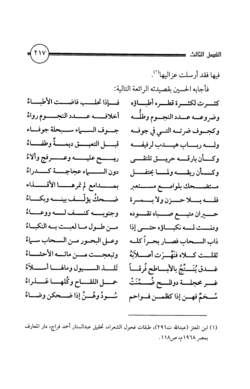 (1) ابن المعتز (عبدالله ت 296)، طبقات فحول الشعراء، تحقيق عبدالستار أحمد فراج، دار المعارف