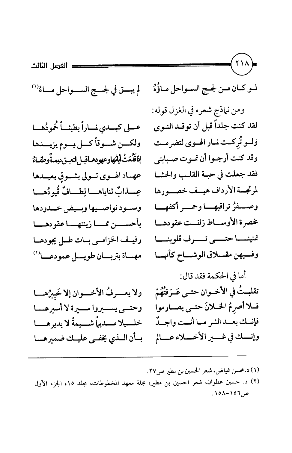 (2) د. حسين عطوان، شعر الحسين بن مطير، مجلة معهد المخطوطات، مجلد 15، الجزء الأول
