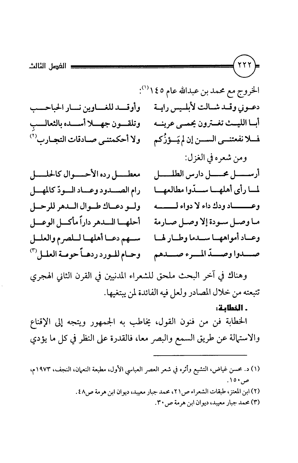 (1) د. محسن غياض، التشيع وأثره في شعر العصر العباسي الاول، مطبعة النعمان، النجف، 1973 م،