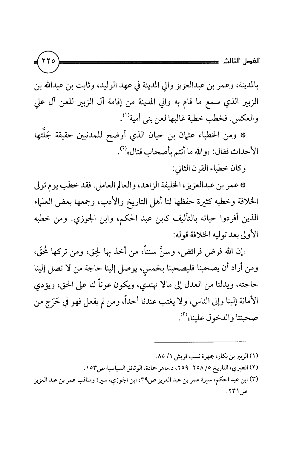 (3) ابن عبد الحكم، سيرة عمر بن عبد العزيز ص 39، ابن الجوزى، سيرة ومناقب عمر بن عبد العزيز