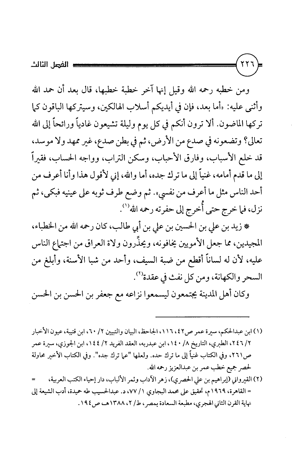 (1) ابن عبدالحكم، سيرة عمر ص 42، 16 1، الجاحظ، البيان والتبيين 2/ 0 6، ابن قتيبه، عيون الاخبار