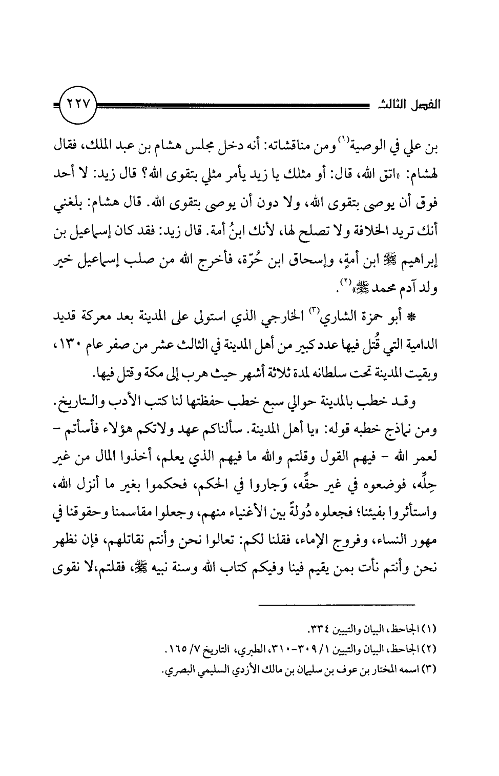 (2) الجاحظ، البيان والتبيين 1/ 9 0 3 - . 1 3، الطبري، التاريخ 7/ 5 6 1.