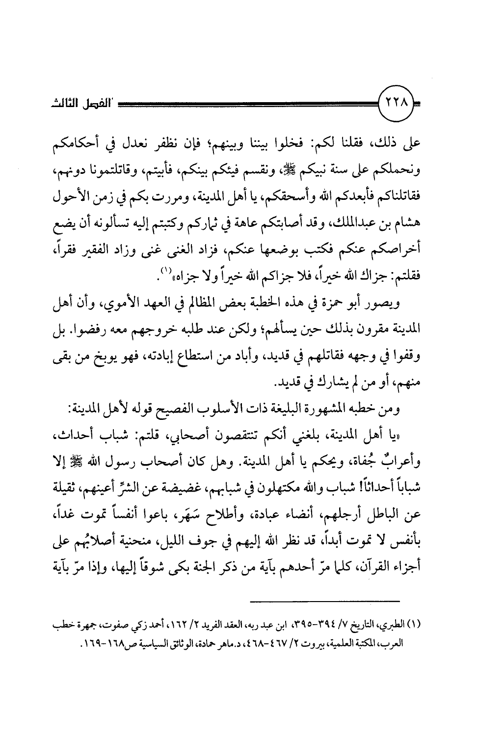 (1) الطبري، التاريخ 7/ 4 39 - 395، ابن عبد ربه، العقد الفريد 2/ 62 1، احمد زكي صفوت، جمهرة خطب