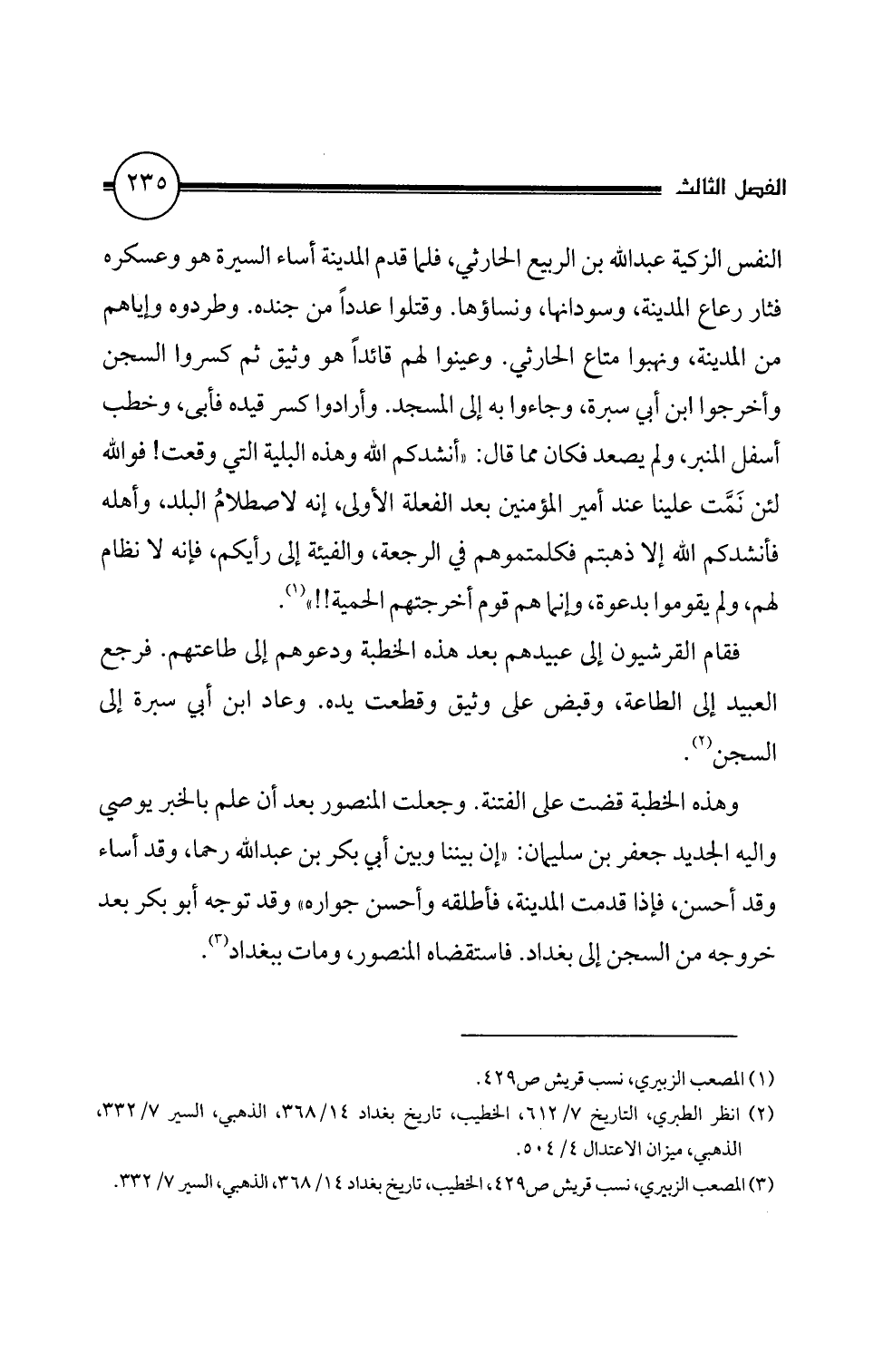 (3) المصعب الزبيرى، نسب قريش ص 9 2 4، الخطيب، تاريخ بغداد 4 1/ 368، الذهبي، السير 7/ 332.