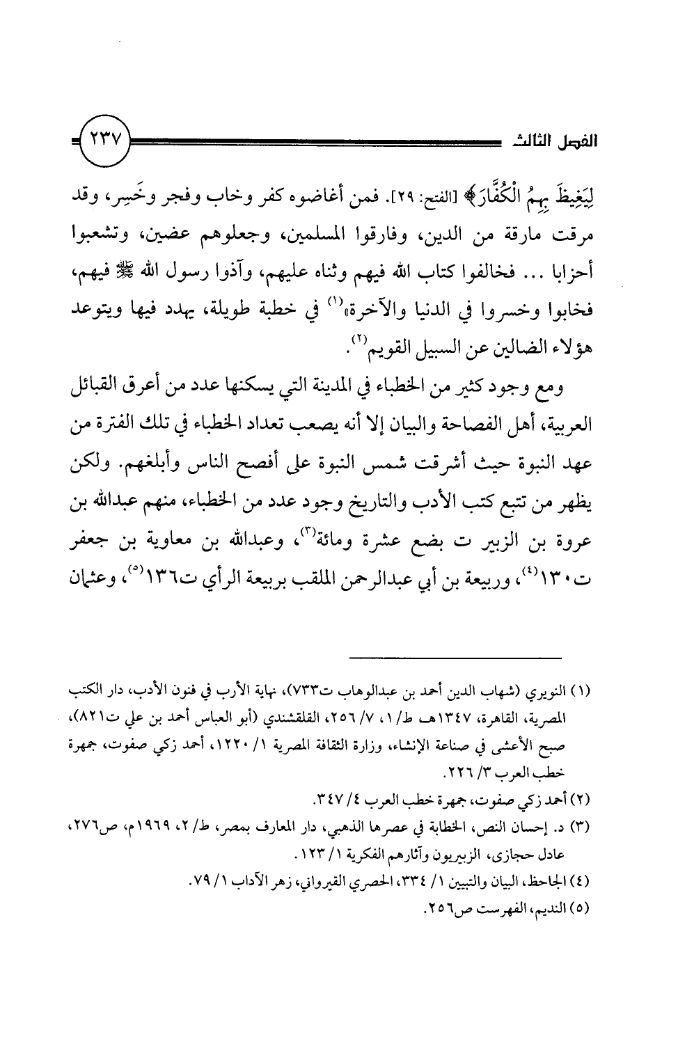(3) د. إحسان النص، الخطابة في عمرها الذهبي، دار المعارف بمصر، ط/ 2، 1969 م، ص 276،