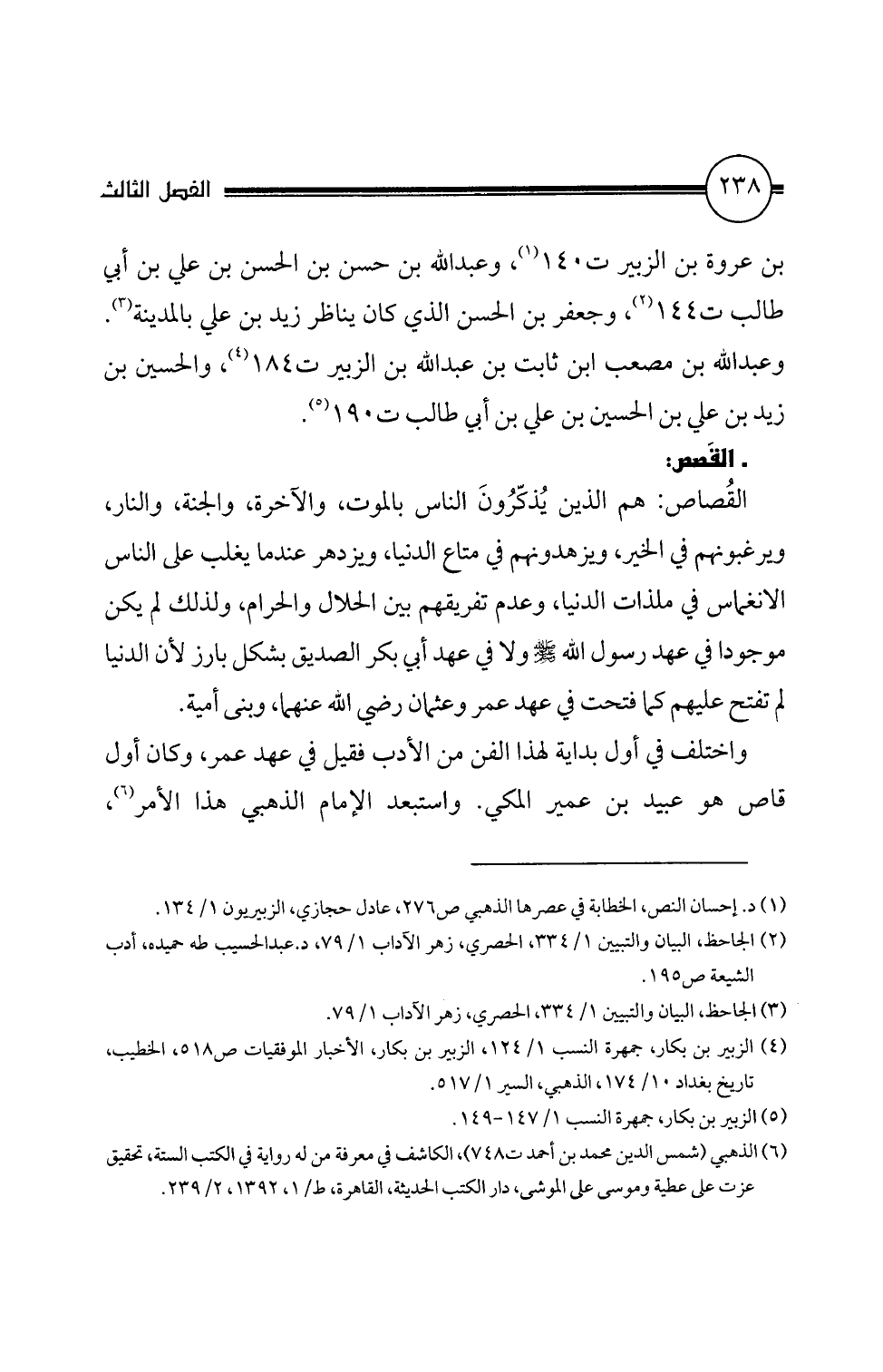 (1) د. إحسان النص، الخطابة في عصرها الذهبي ص 276، عادل حجازي، الزبيريون 1/ 134.