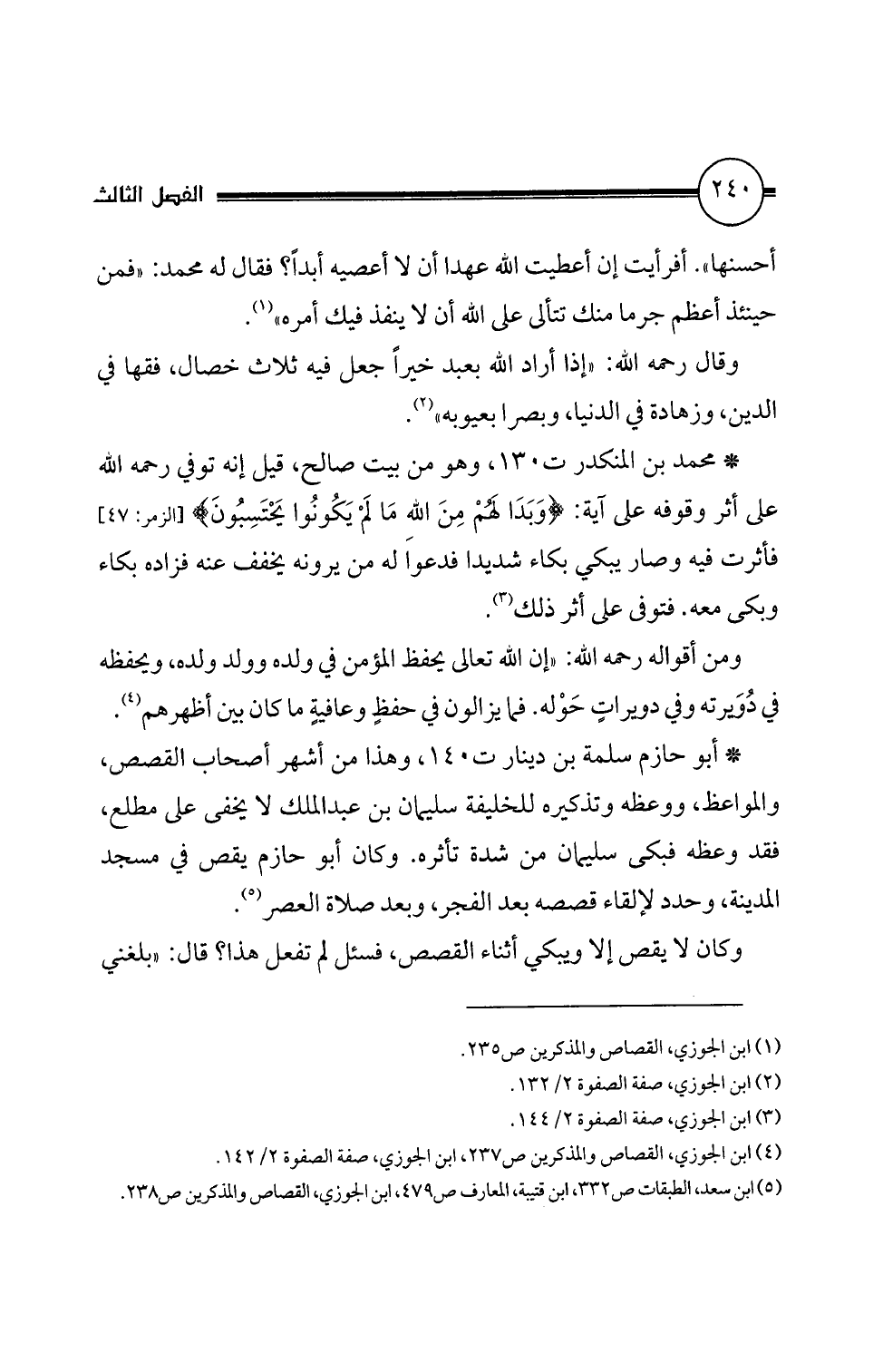 (4) ابن الجوزى، القصاص والمذكرين ص 237، ابن الجوزي، صفة الصفوة 2/ 2 4 1.