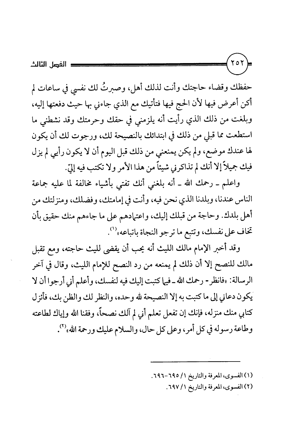 (1) الفسوى، المعرفة والتاريخ 1/ 695 - 696.