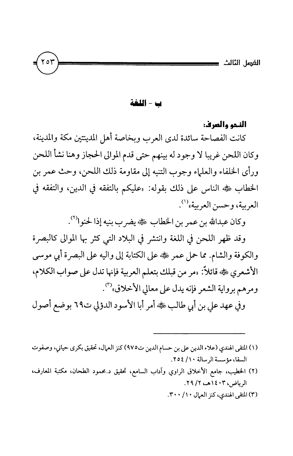 وفي عهد علي بن أبي طالب للأ أمر ابا الأسود الدؤلي ت 69 بوضع اصول