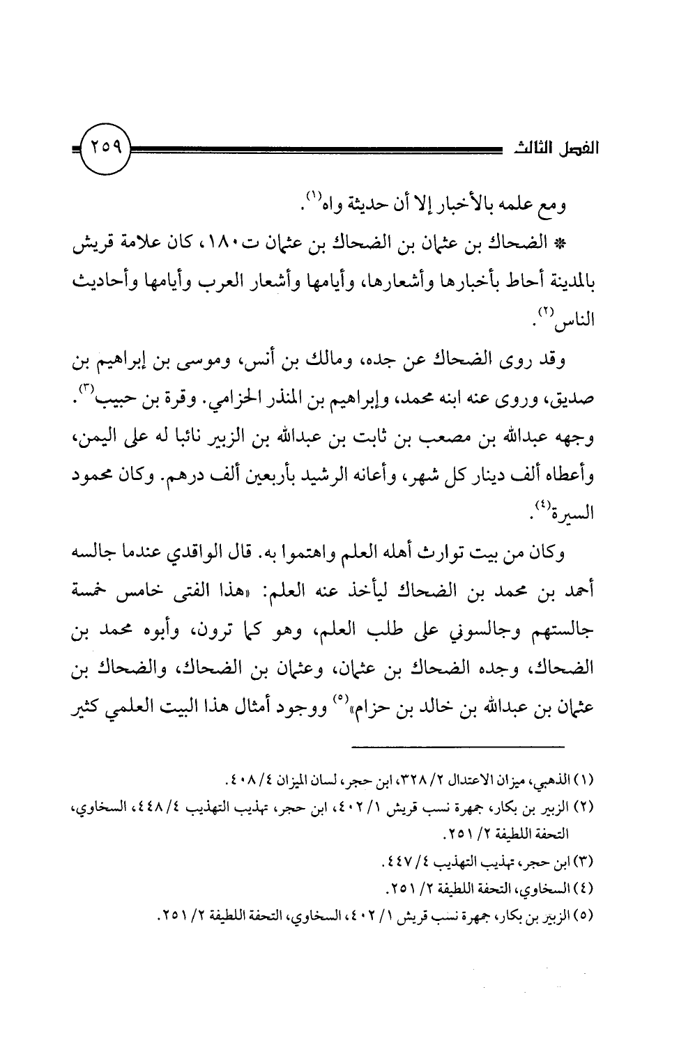 (5) الزبير بن بكار، جمهرة نسب قريش 1/ 2 " 4، السخاوي، التحفة اللطيفة 2/ 1 5 2.