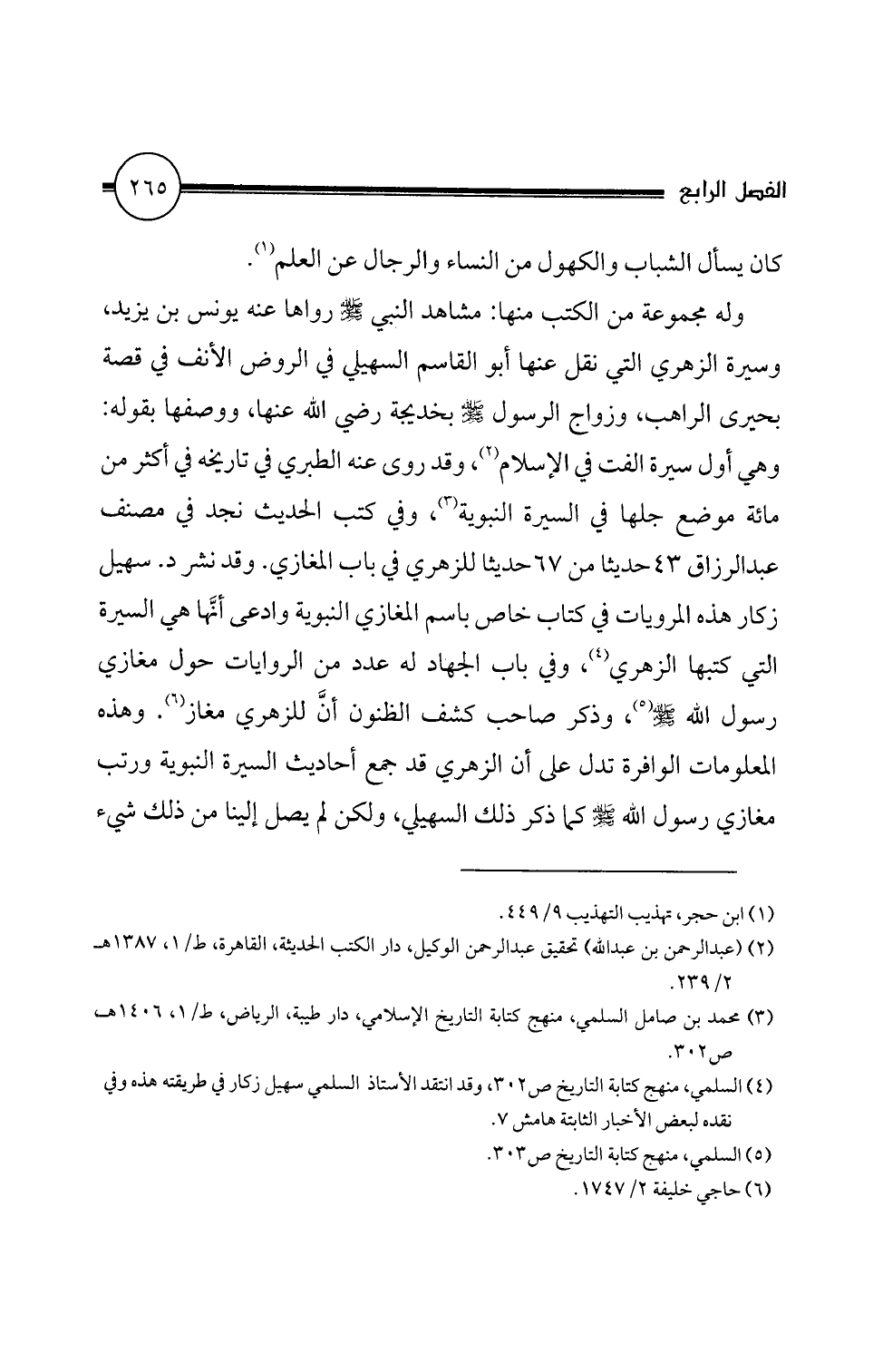 التي كتبها الزهري (4)، وفي باب الجهاد له عدد من الروايات حول مغازي
