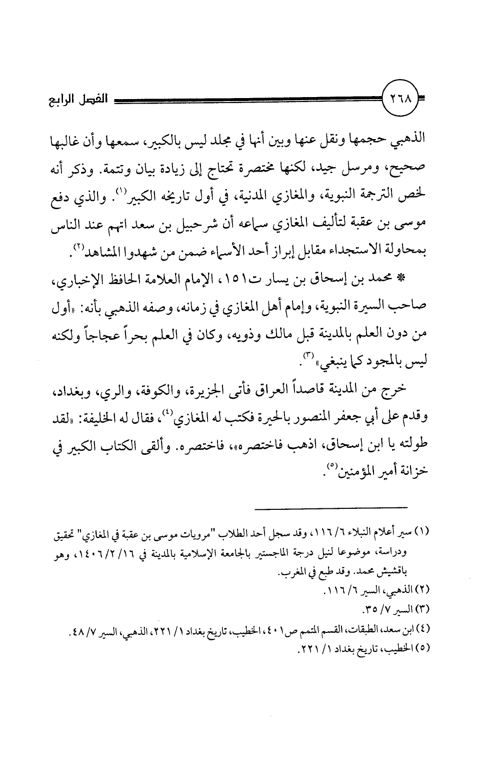 صاحب السيرة النبوية، وإمام أهل المغازي في زمانه، وصفه الذهبي بأنه: "أول