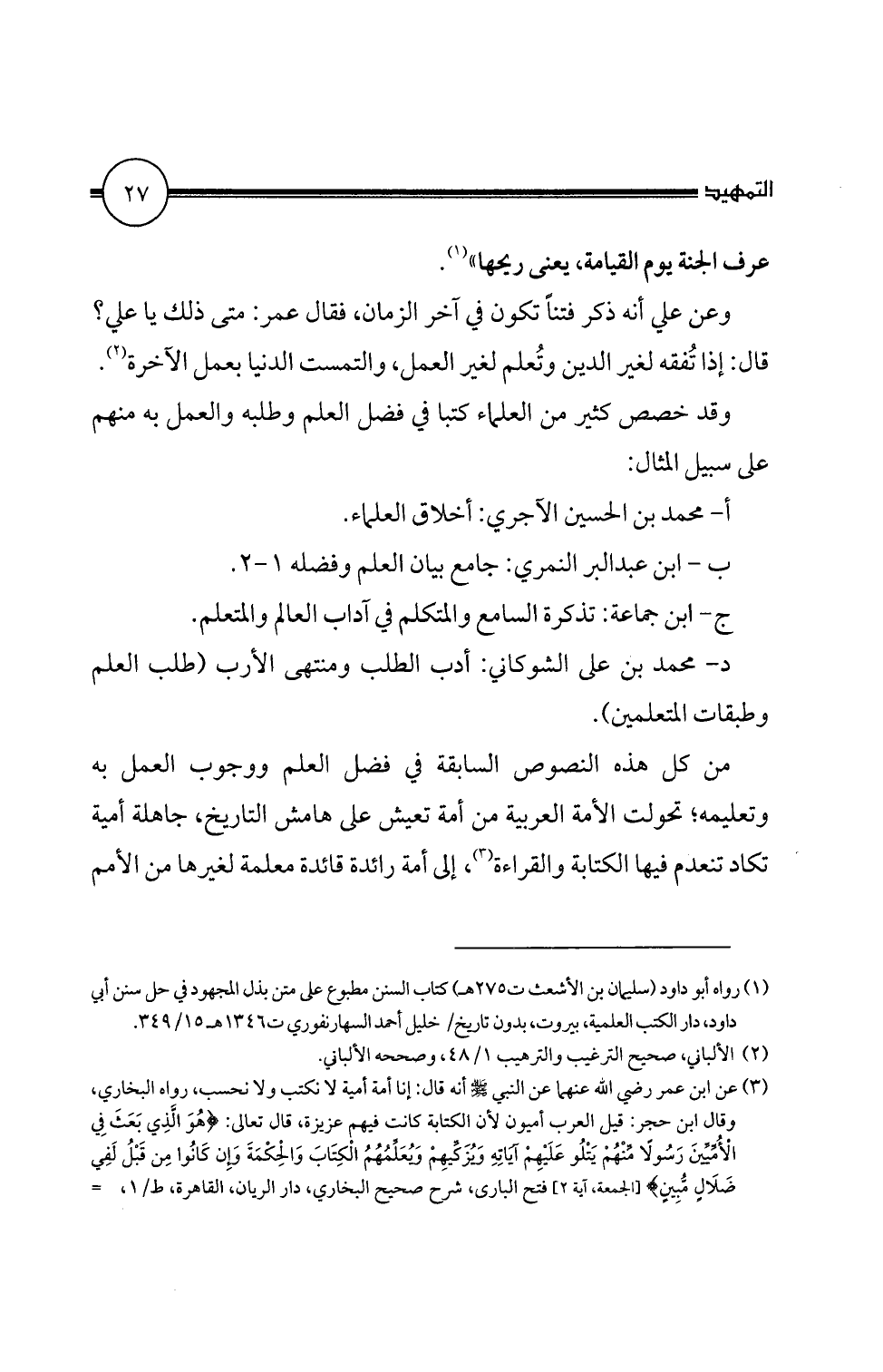 (1) رواه أبو داود (سليمان بن الأشعث ت ه 27 ط كاب السنن مطبوع على متن بذل المجهود في حل سنن أبي