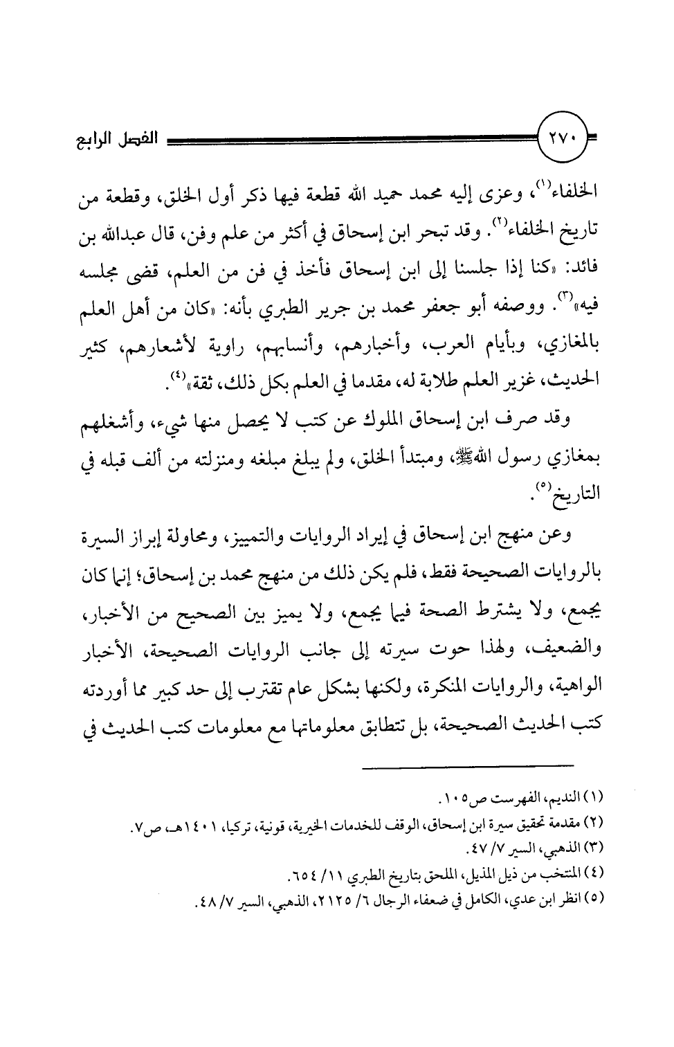 (2) مقدمة تحقيق سيرة ابن إسحاق، الوقف للخدمات الخيرية، قونية، تركيا، 1 0 4 1 هـ، ص 7.