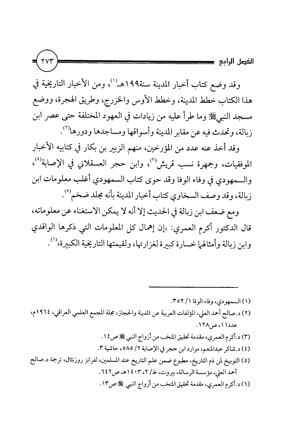 (6) د. اكرم العمري، مقدمة تحقيق المتخب من أزواج النبي! ص 13.
