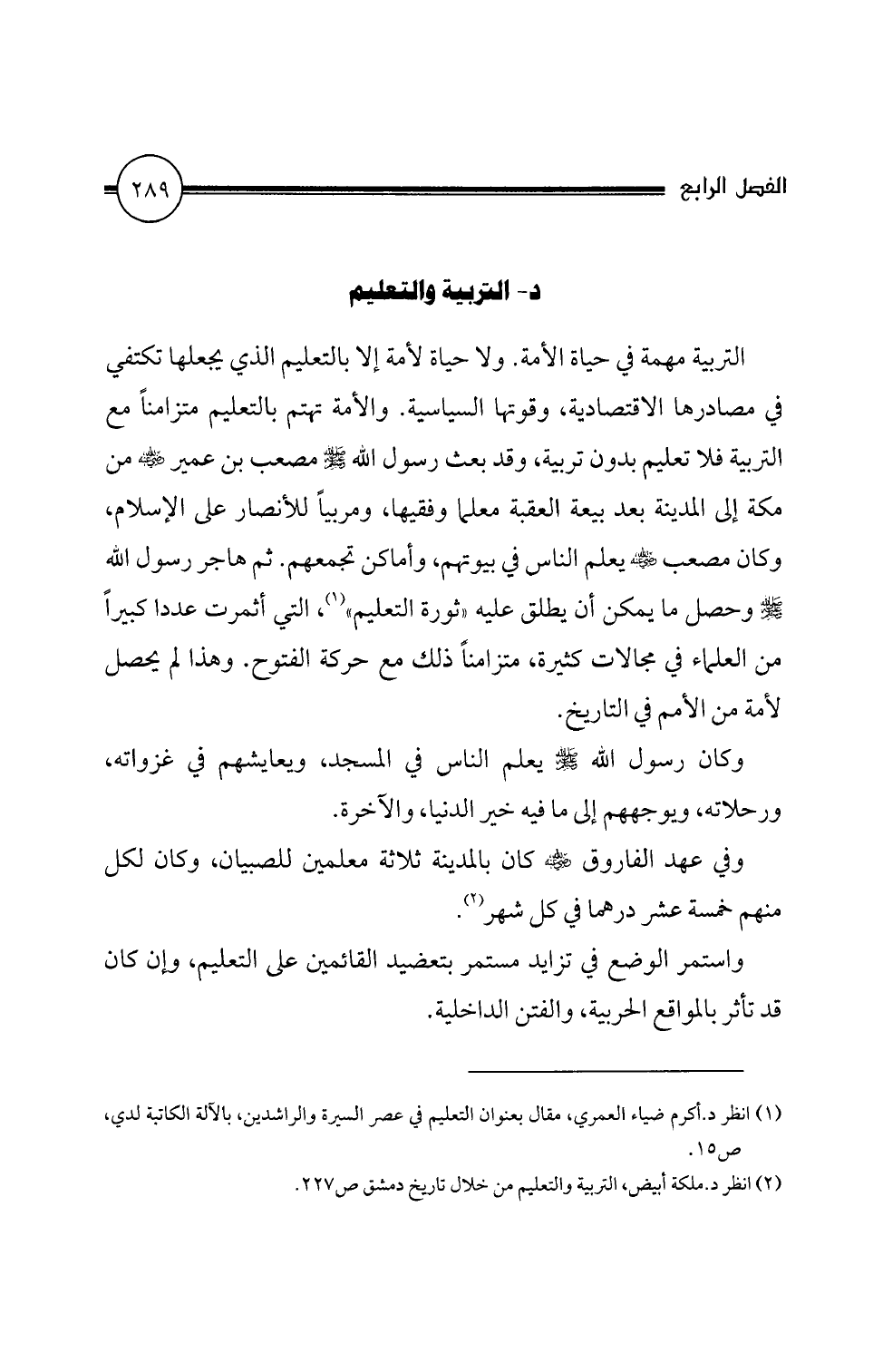 (1) انظر د. أكرم ضياء العمري، مقال بعنوان التعليم في عصر السيرة والراشدين، بالالة الكاتبة لدي،