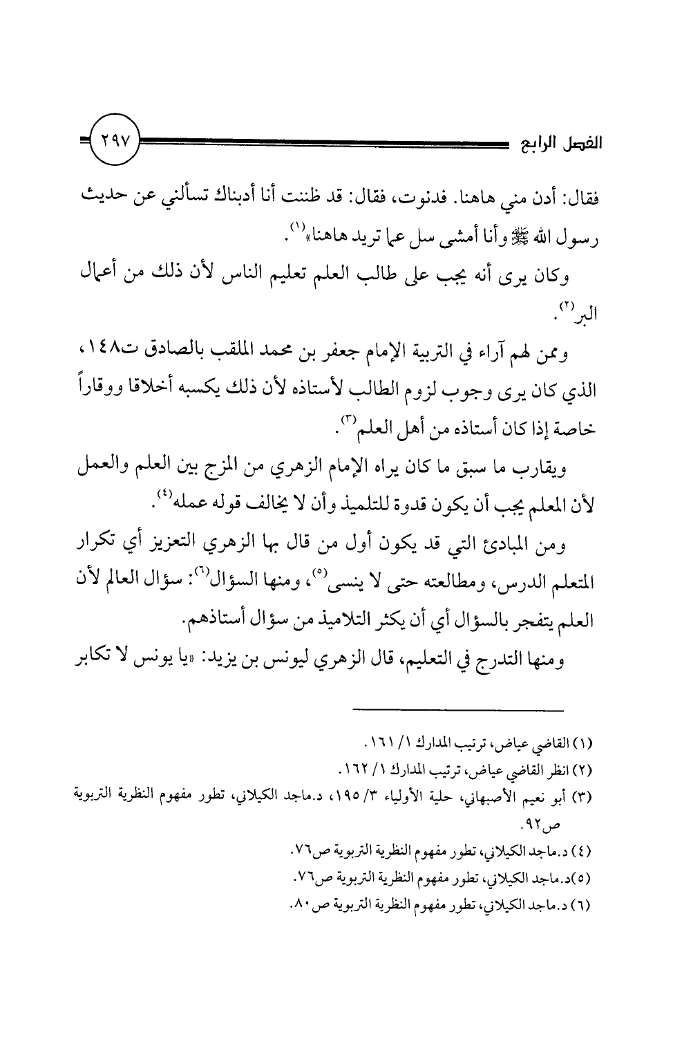 (3) أبو نعيم الأصبهاني، حلية الأولياء 3/ 195، د. ماجد الكيلاني، تطور مفهوم النظرية التربوية
