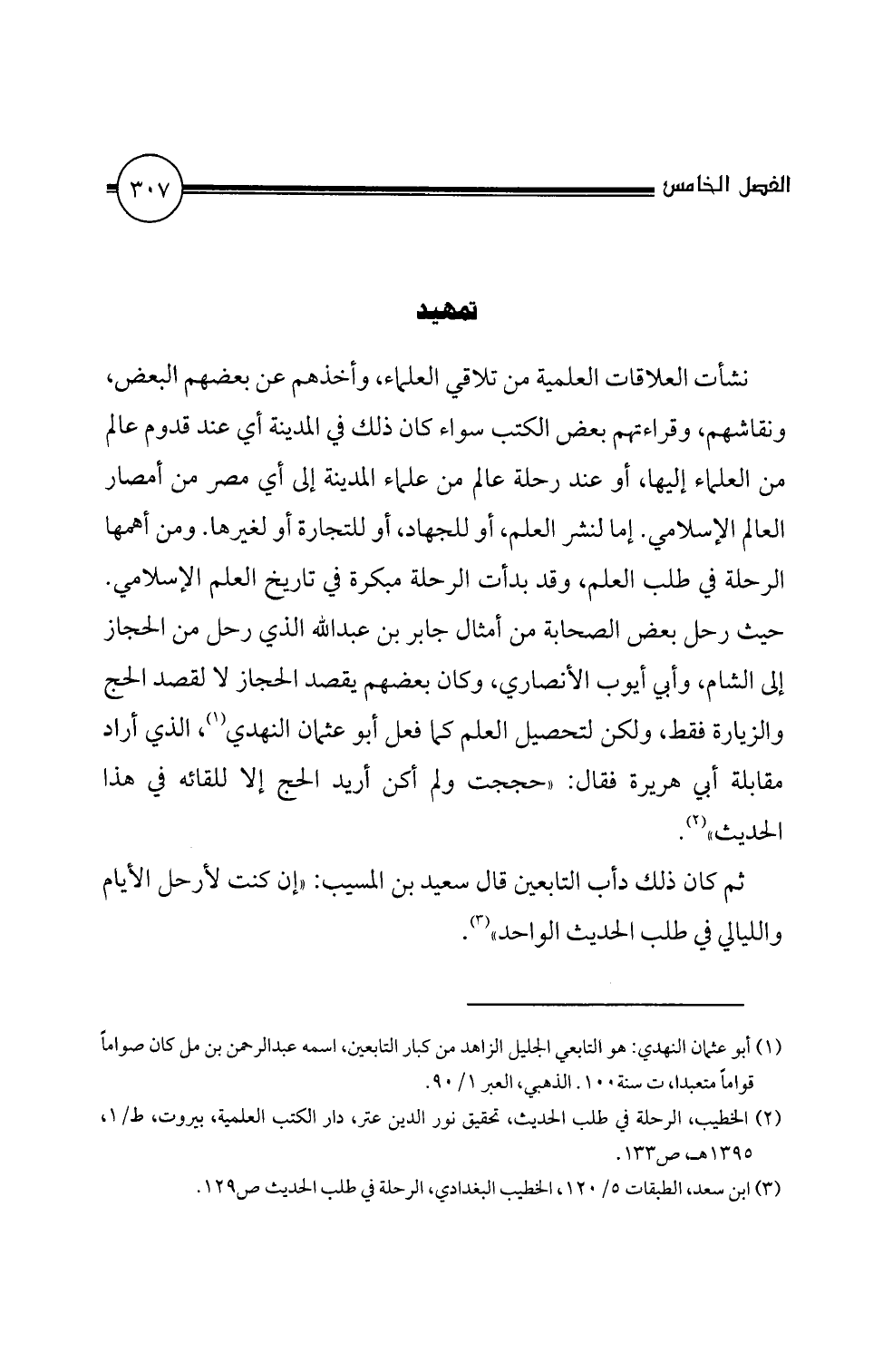 (2) الخطيب، الرحلة في طلب الحديث، تحقيق نور الدين عتر، دار الكتب العلمية، بيروت، ط/ 1،