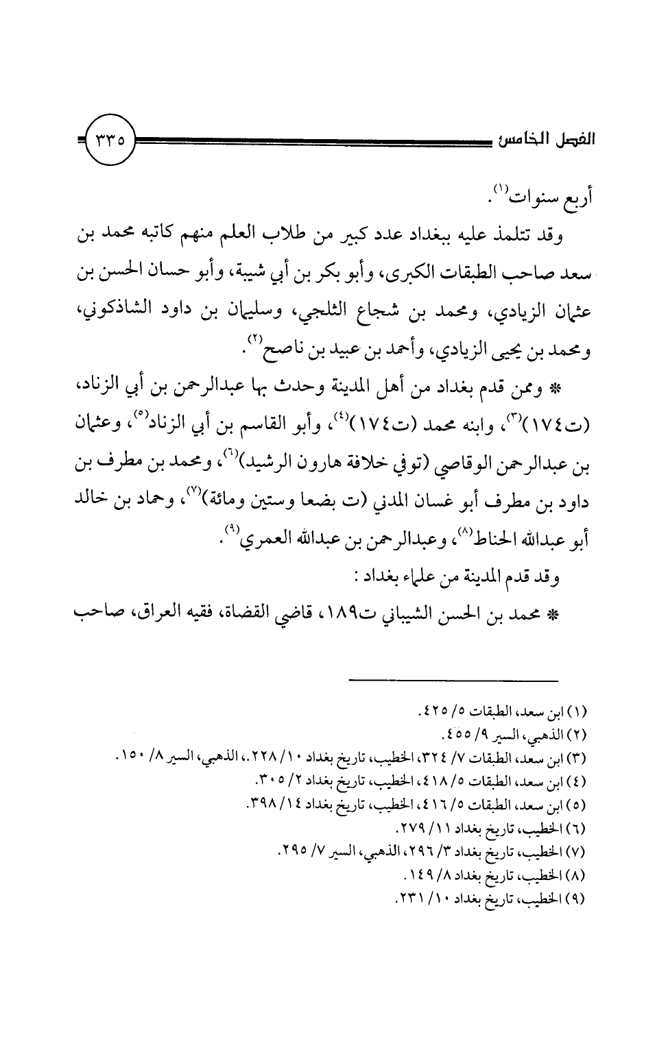 (4) ابن سعد، الطبقات 5/ 18 4، الخطيب، تاريخ بغداد 2/ 5 0 3.