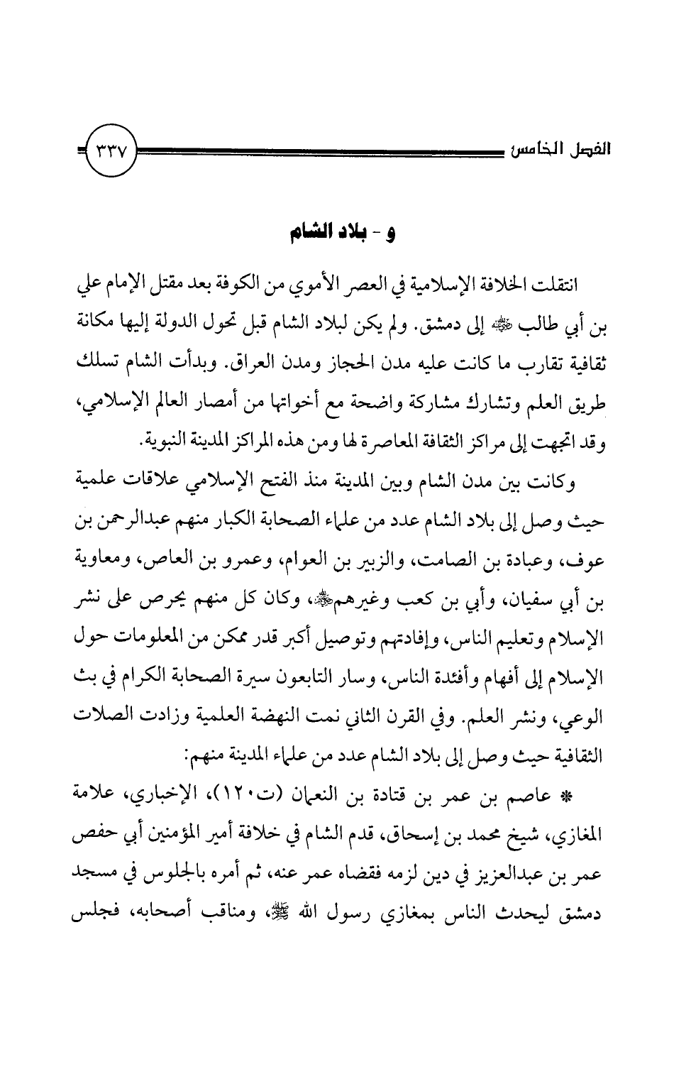 ثقافية تقارب ما كانت عليه مدن الحجاز ومدن العراق. وبدأت الشام تسلك