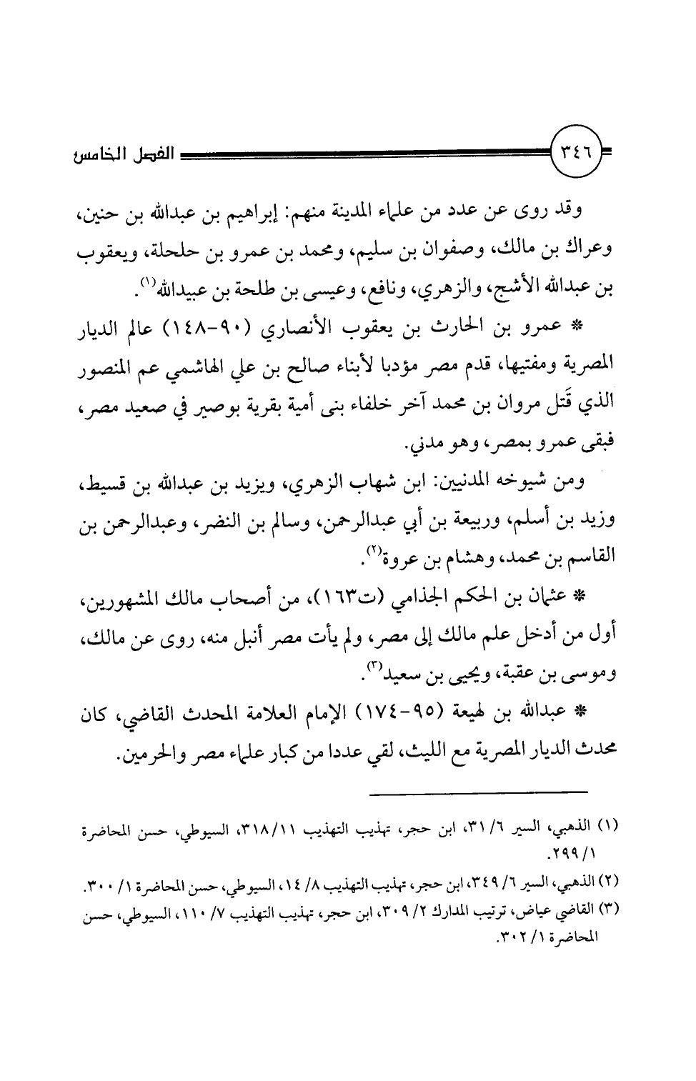 (3) القاضي عياض، ترتيب المدارك 2/ 9 ة 3، ابن حجر، تهذيب التهذيب 7/ " 1 1، السيوطي، حسن