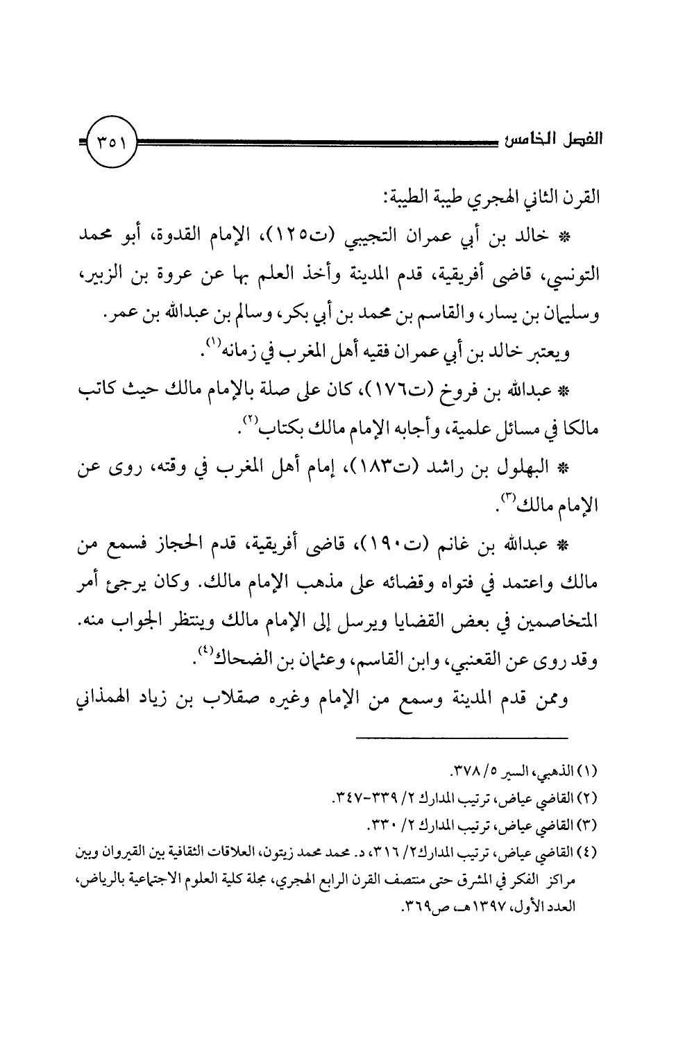 (4) القاضي عياض، ترتيب المدارك 2/ 316، د. محمد محمد زيتون، العلاقات الثقافية بين القيروان وبين