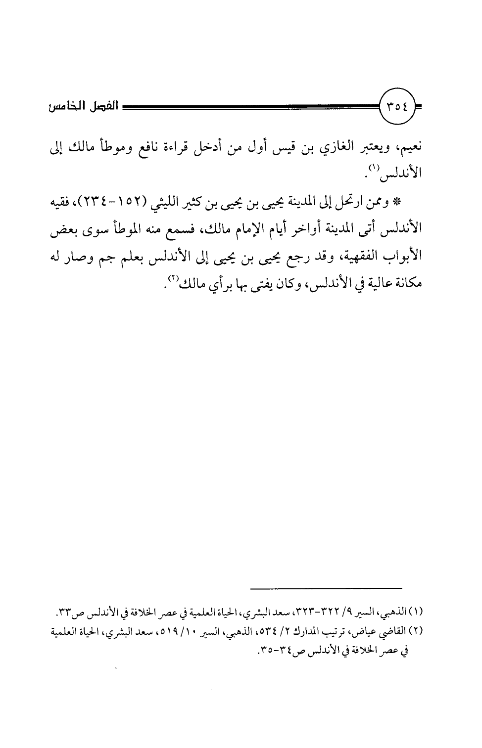 (2) القاضي عياض، ترتيب المدارك 2/ 534، الذهبي، السير 0 1/ 519، سعد البشري، الحياة العلمية