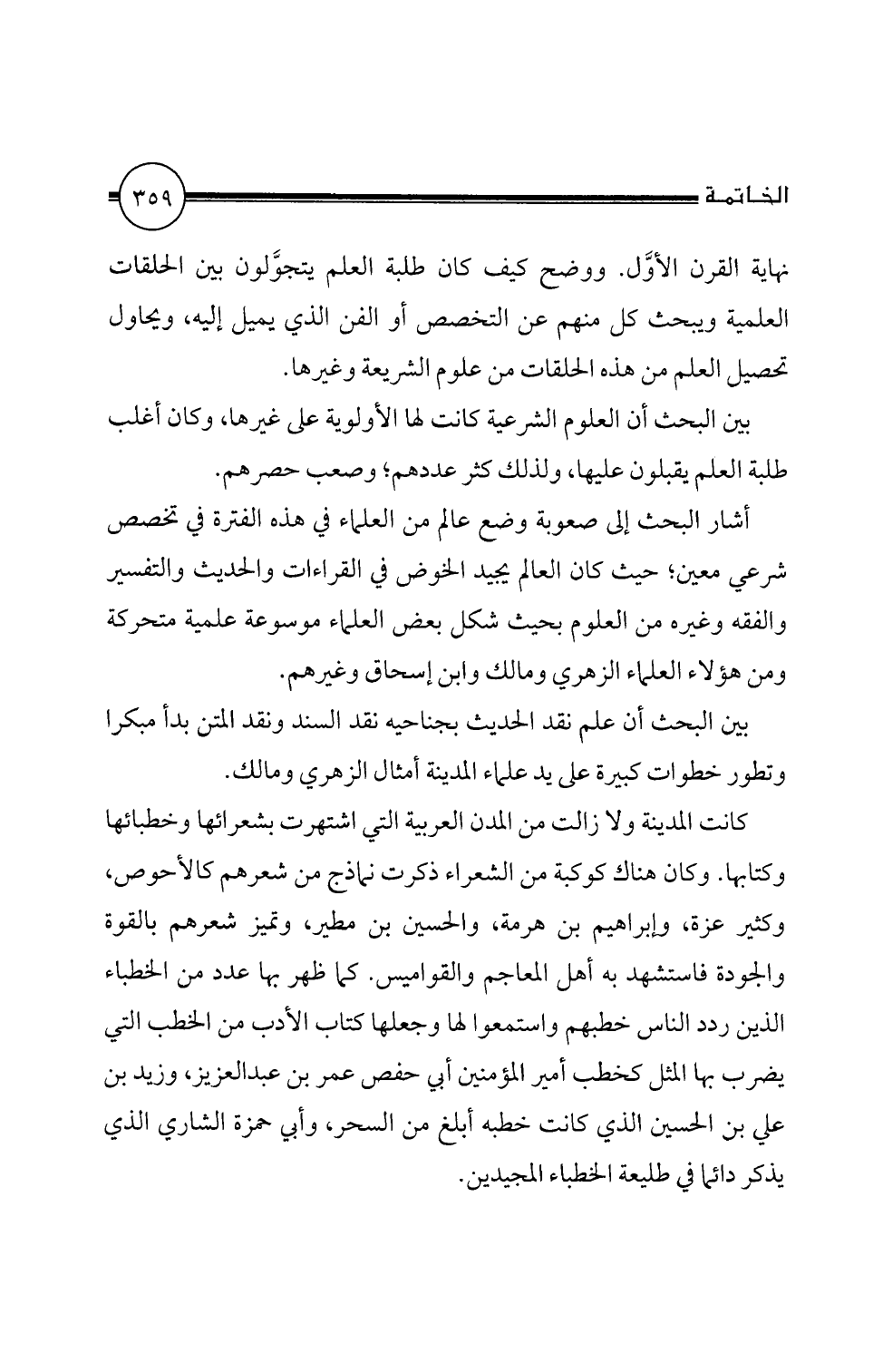 نهاية القرن الأول. ووضح كيف كان طلبة العلم يتجولون بين الحلقات