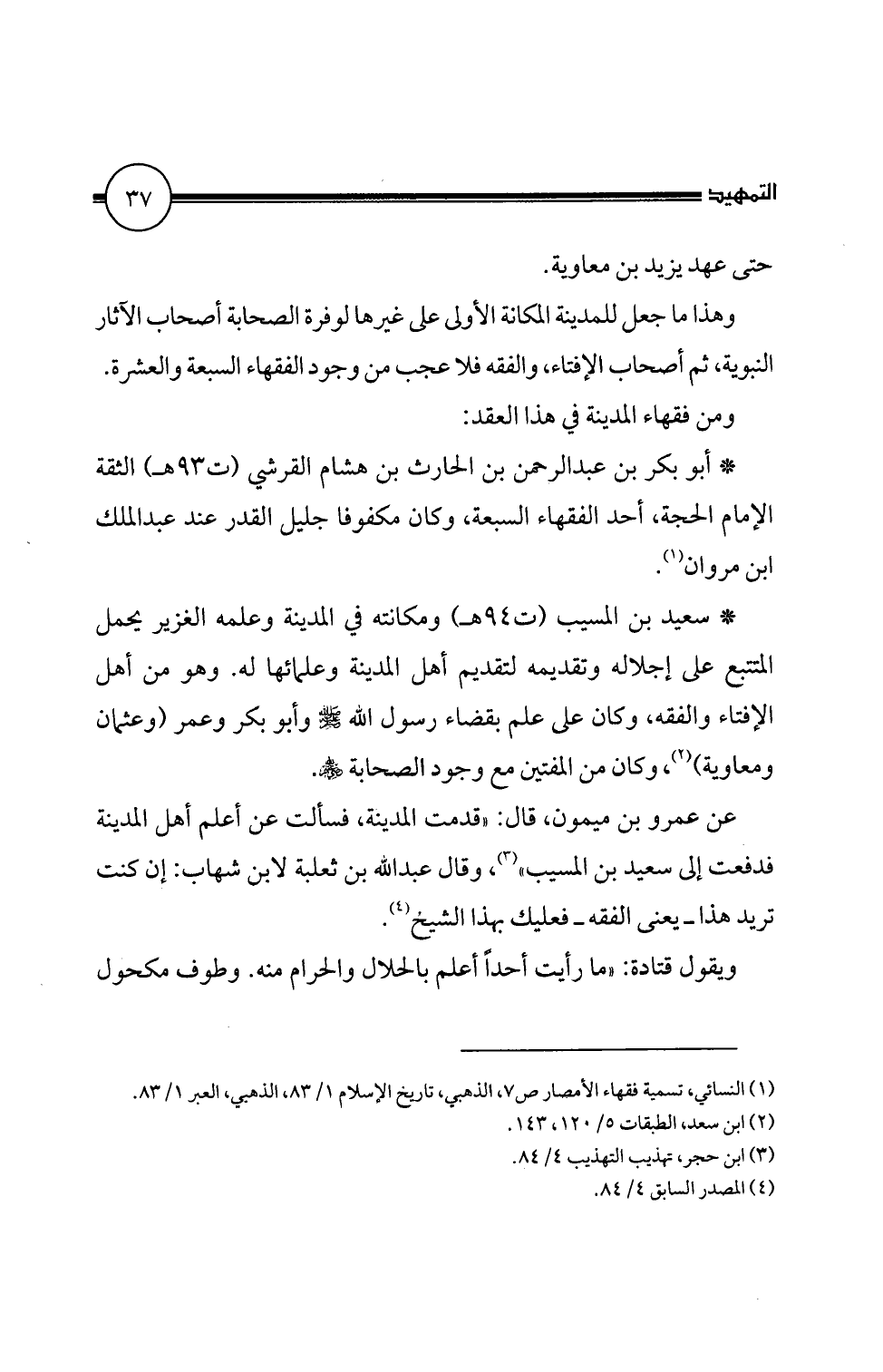 (1) النسائي، تسمية فقهاء الامصار ص 7، الذهبي، تاريخ الإسلام 1/ 83، الذهبي، العبر 1/ 83.