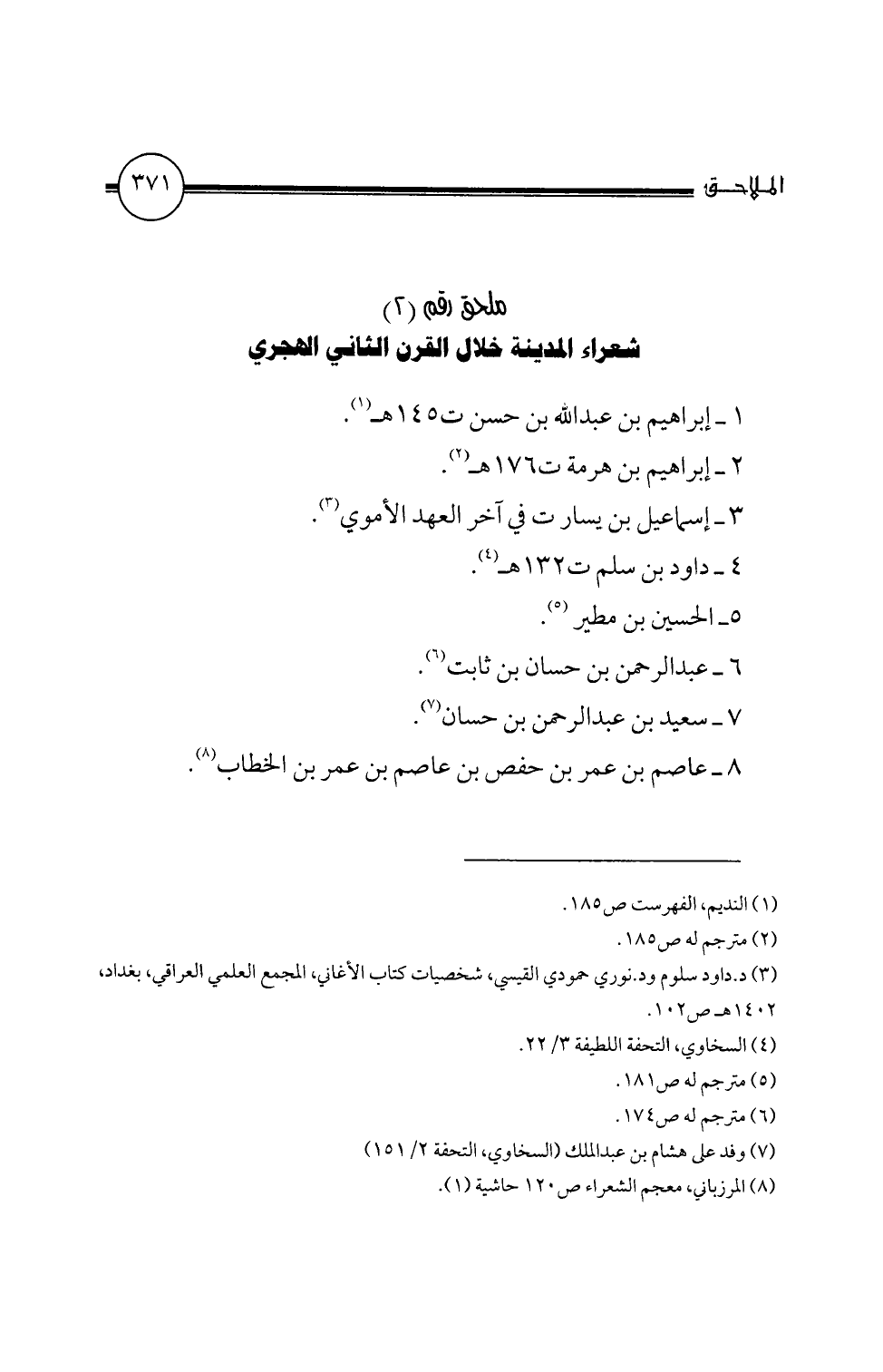 ملحق رقم (2) شعراء المدينة خلال القرن الثاني الهجري