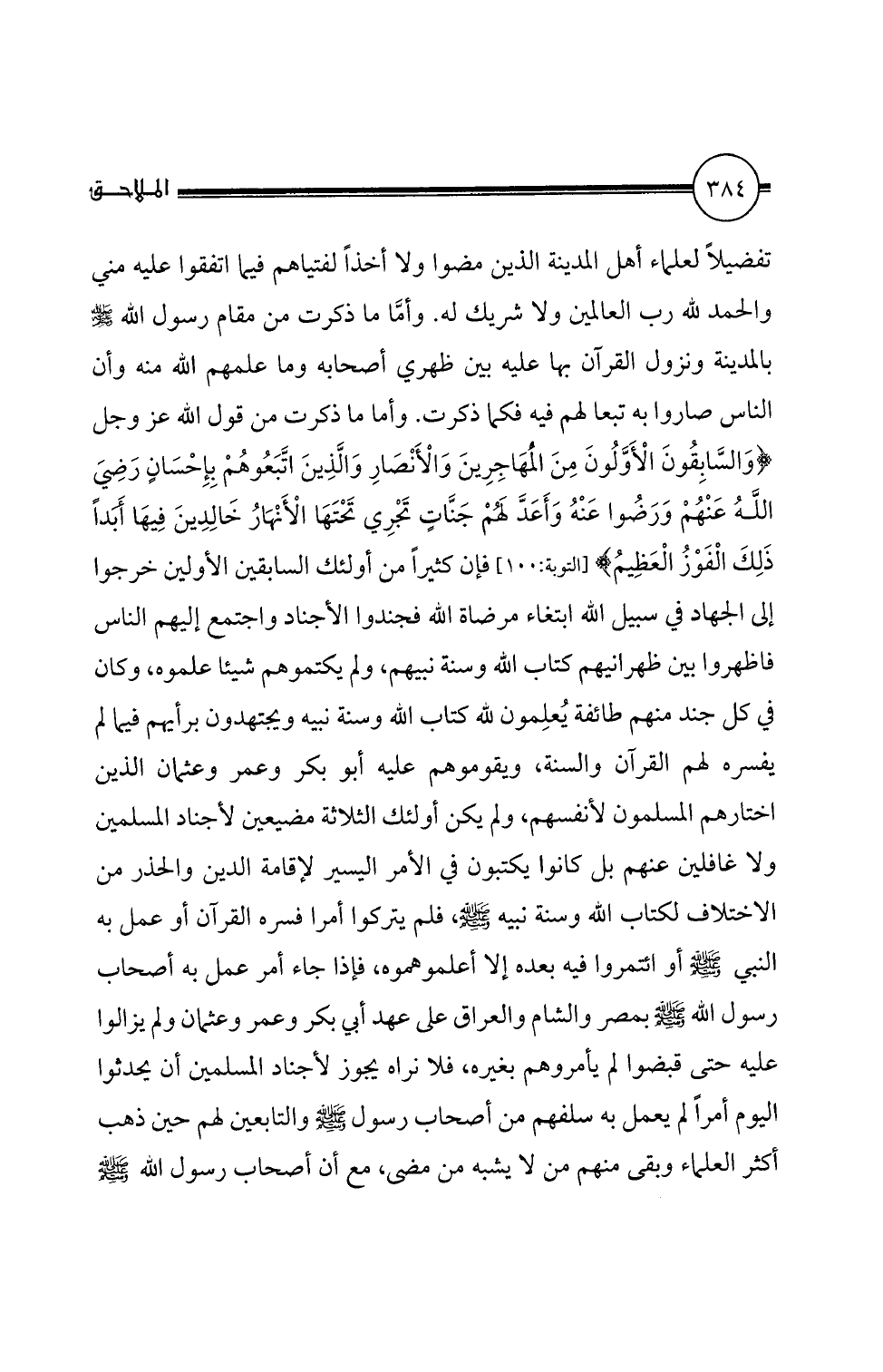"والسابقون الأولون من اثهاجرين والأنصار والذين اتبعوهم بإحسان رضي