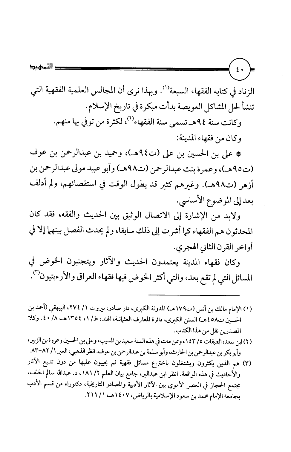 الزناد في كتابه الفقهاء السبعة (1). وبهذا يرى ان المجالس العلمية الفقهية التي