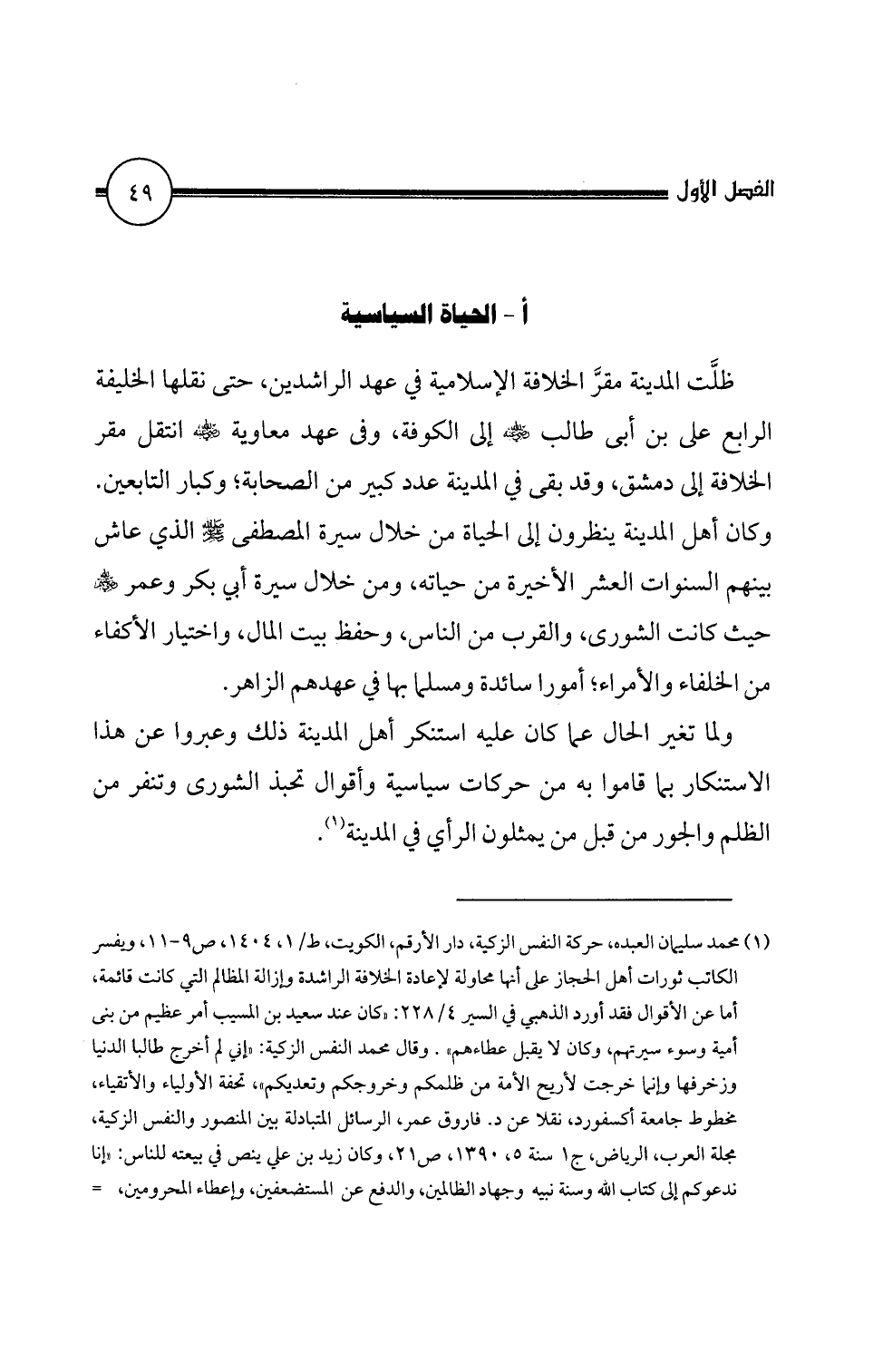 (1) محمد سليمان العبده، حركة النفس الزكية، دار الأرقم، الكويت، ط/ 1، 4 0 4 1، ص 9 - 1 1، ويفسر