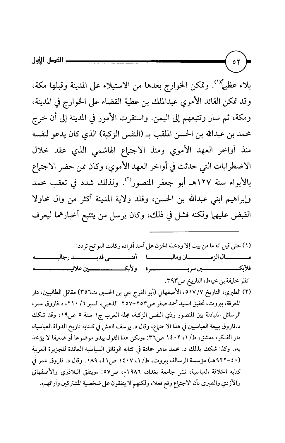 (2) الطبري، التاريخ 7/ 517، الأصفهاني (أبو الفرج على بن الحسين ت 356) مقاتل الطالبيين، دار