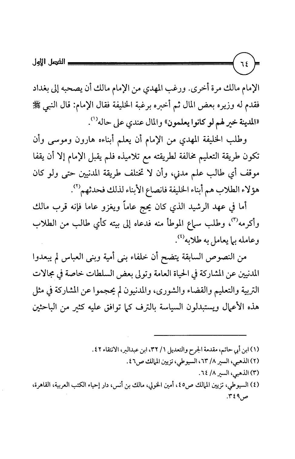 (4) السيوطي، تزيين الممالك ص ه 4، امين الخولي، مالك بن انس، دار إحياء الكتب العربية، القاهرة،