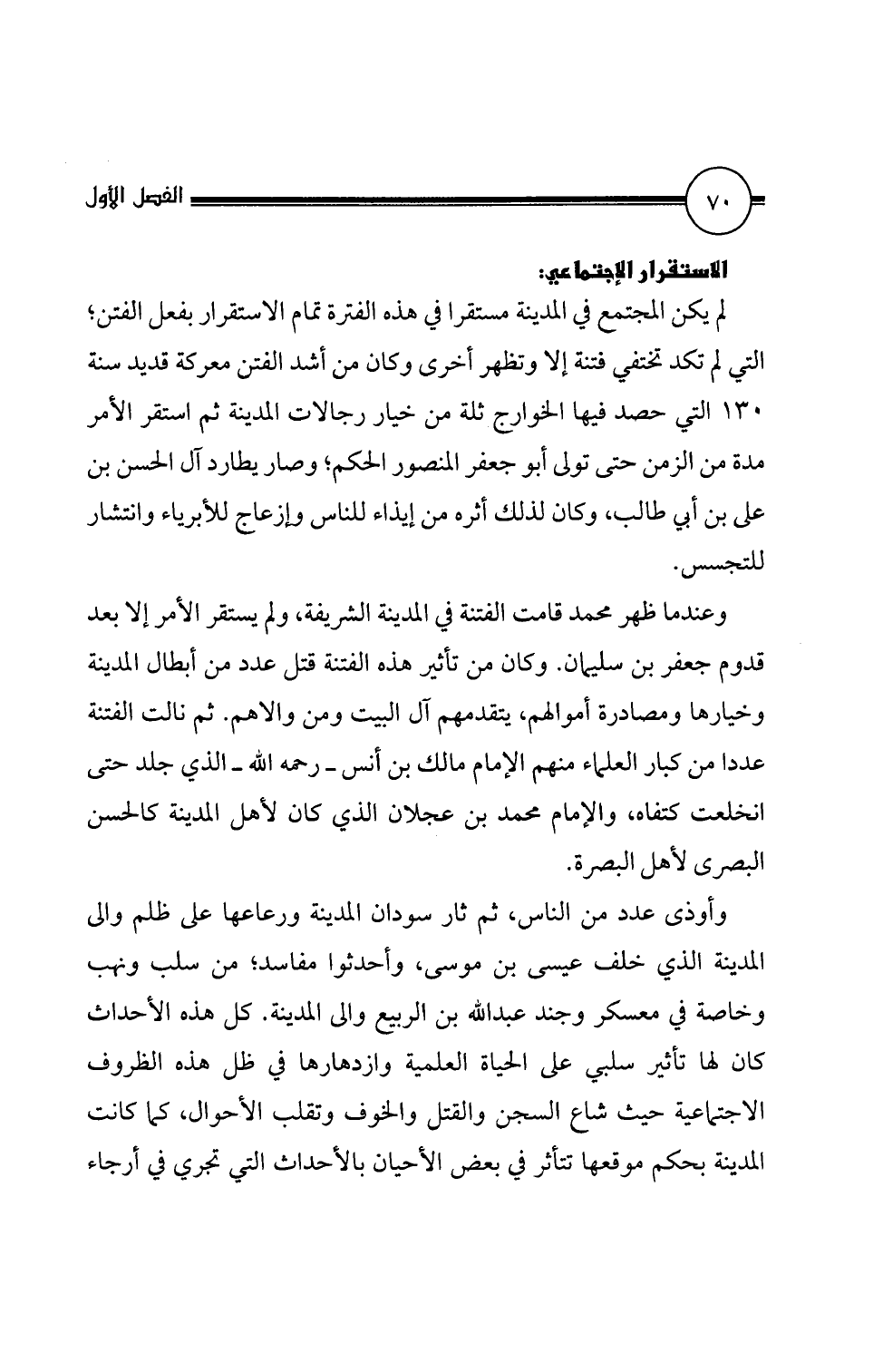 قدوم جعفر بن سليمان. وكان من تأثير هذه الفتنة قتل عدد من أبطال المدينة