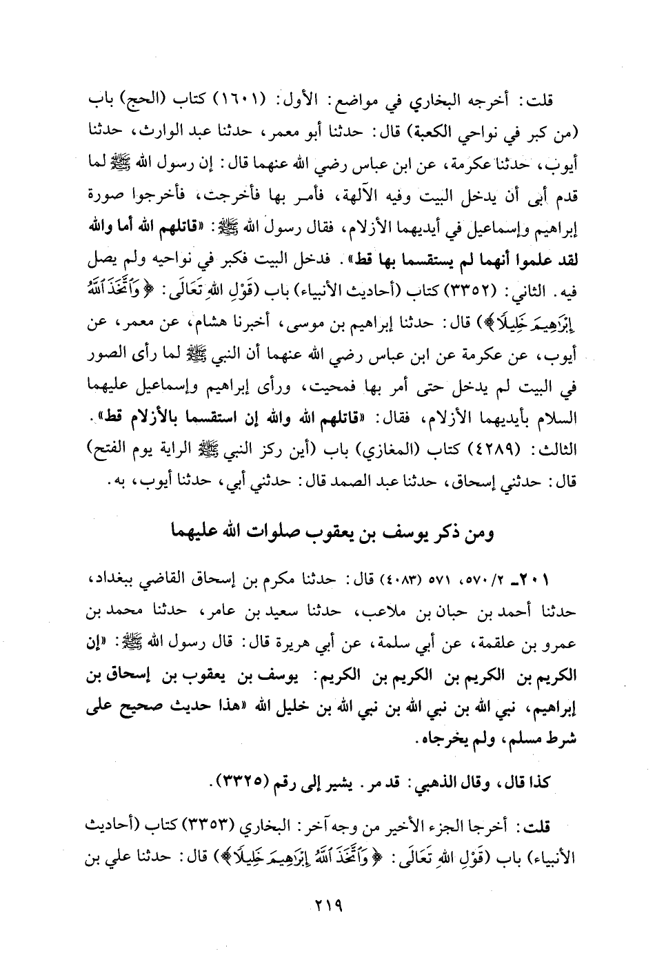 201 - 2/ 570، 571 (4083) قال: حدثنا مكرم بن إسحاق القاضي ببغداد، حدثنا أحمد بن حبان بن ملاعب، حدثنا سعيد بن عامر، حدثنا محمد بن عمرو بن علقمة، عن أبي سلمة، عن أبي هريرة قال: قال رسول الله - صلى الله عليه وسلم -: "إن الكريم بن الكريم بن الكريم بن الكريم: يوسف بن يعقوب بن إسحاق بن إبراهيم، نبي الله بن نبي الله بن نبي الله بن خليل الله "هذا حديث صحيح على شرط مسلم، ولم يخرجاه.