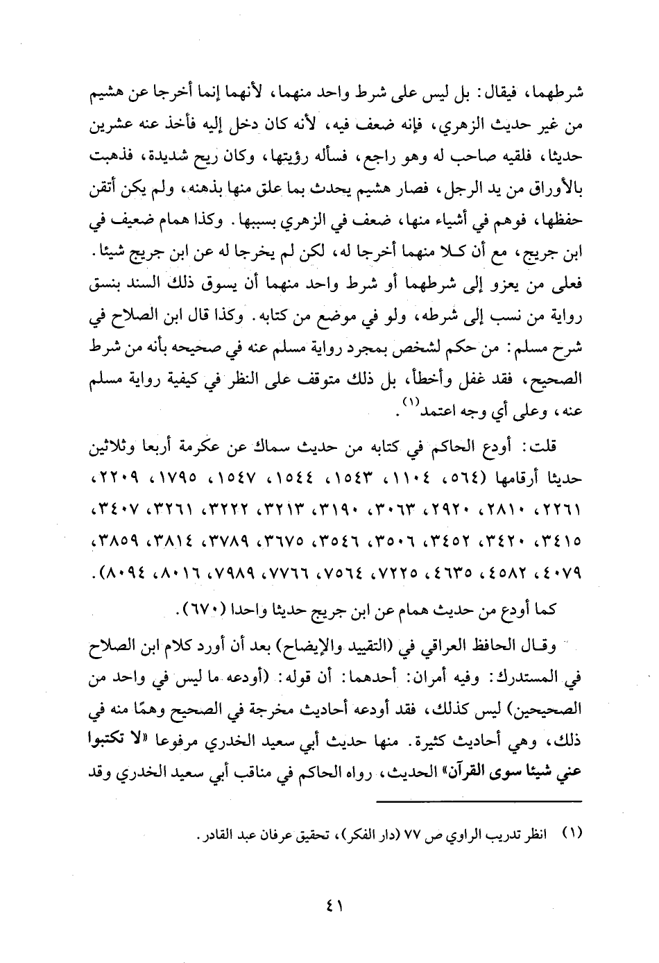 (¬1) انظر تدريب الراوي ص 77 (دار الفكر)، تحقيق عرفان عبد القادر.