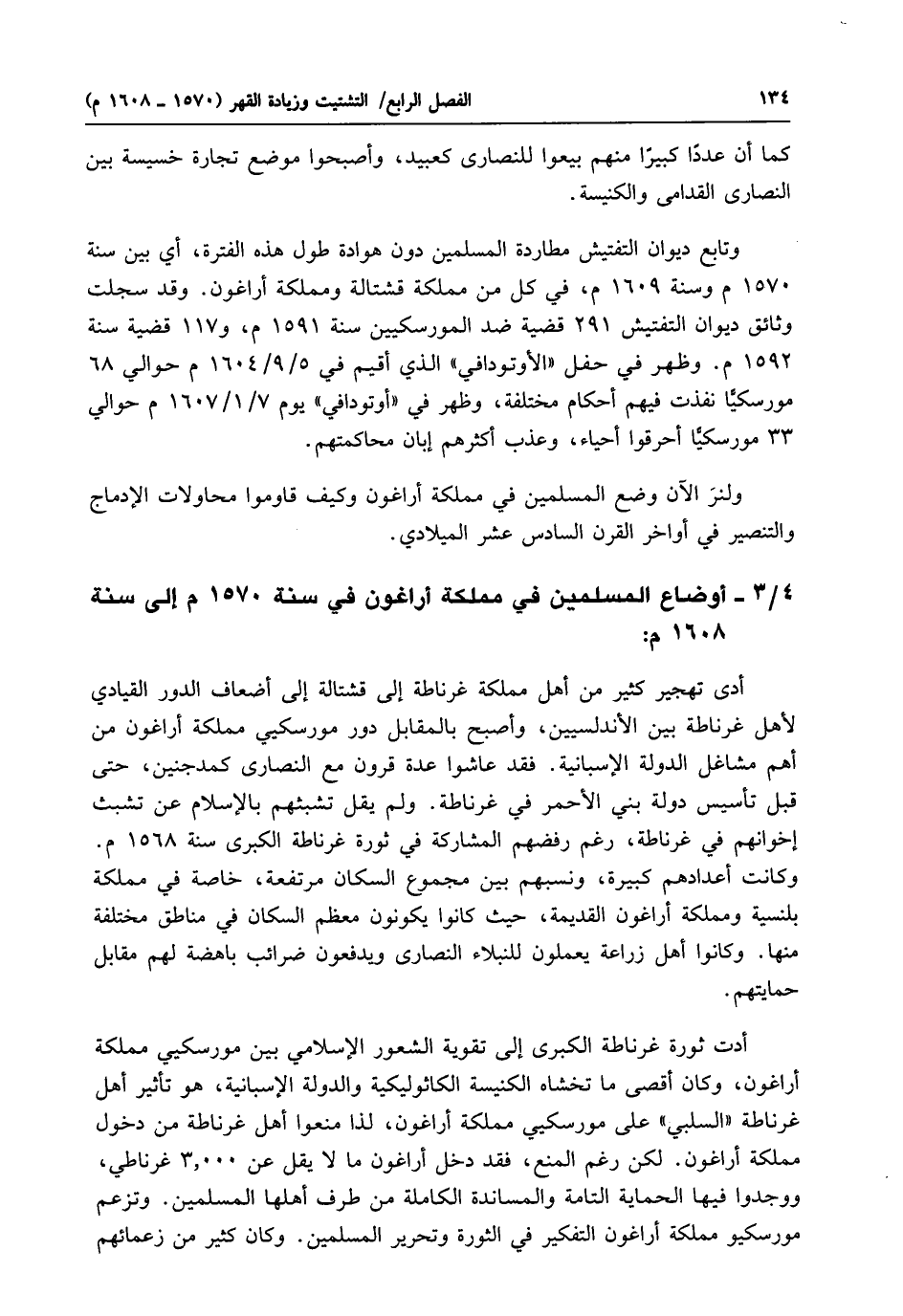 4/ 3 - أوضاع المسلمين في مملكة أراغون من سنة 1570 م إلي سنة 1608 م: