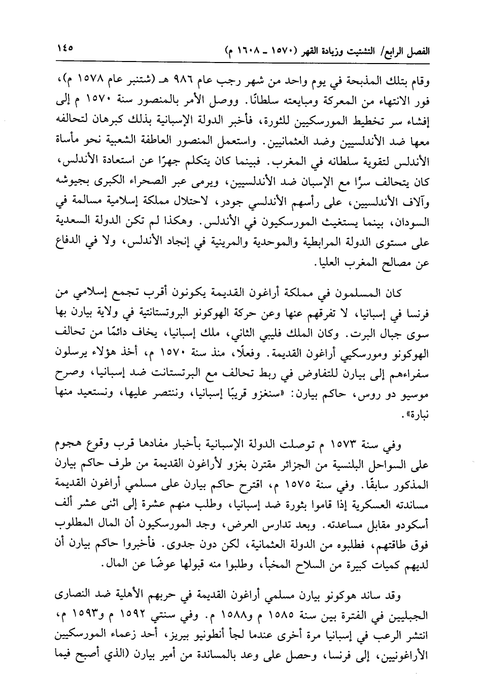 كان المسلمون في مملكة أراغون القديمة يكونون أقرب تجمع إسلامي من فرنسا في إسبانيا، لا تفرقهم عنها وعن حركة الهوكونو البروتستانتية في ولاية بيارن بها سوى جبال البرت. وكان الملك فليبي الثاني، ملك إسبانيا، يخاف دائمًا من تحالف الهوكونو ومورسكيي أراغون القديمة. وفعلاً، منذ سنة 1570 م، أخذ هؤلاء يرسلون سفراءهم إلى بيارن للتفاوض في ربط تحالف مع البرتستانت ضد إسبانيا، وصرح موسيو دو روس، حاكم بيارن: "سنغزو قريبًا إسبانيا، وننتصر عليها، ونستعيد منها نبارة".