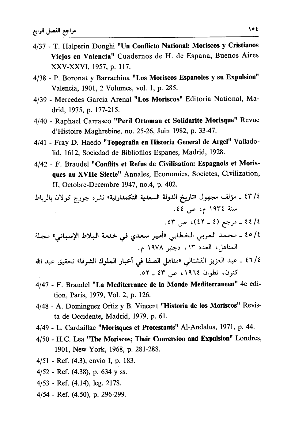 4/ 37 - T. Halperin Donghi "Un Conflicto National: Moriscos y Cristianos Viejos en Valencia" Cuadernos de H. de Espana, Buenos Aires XXV-XXVI, 1957, p. 117.
