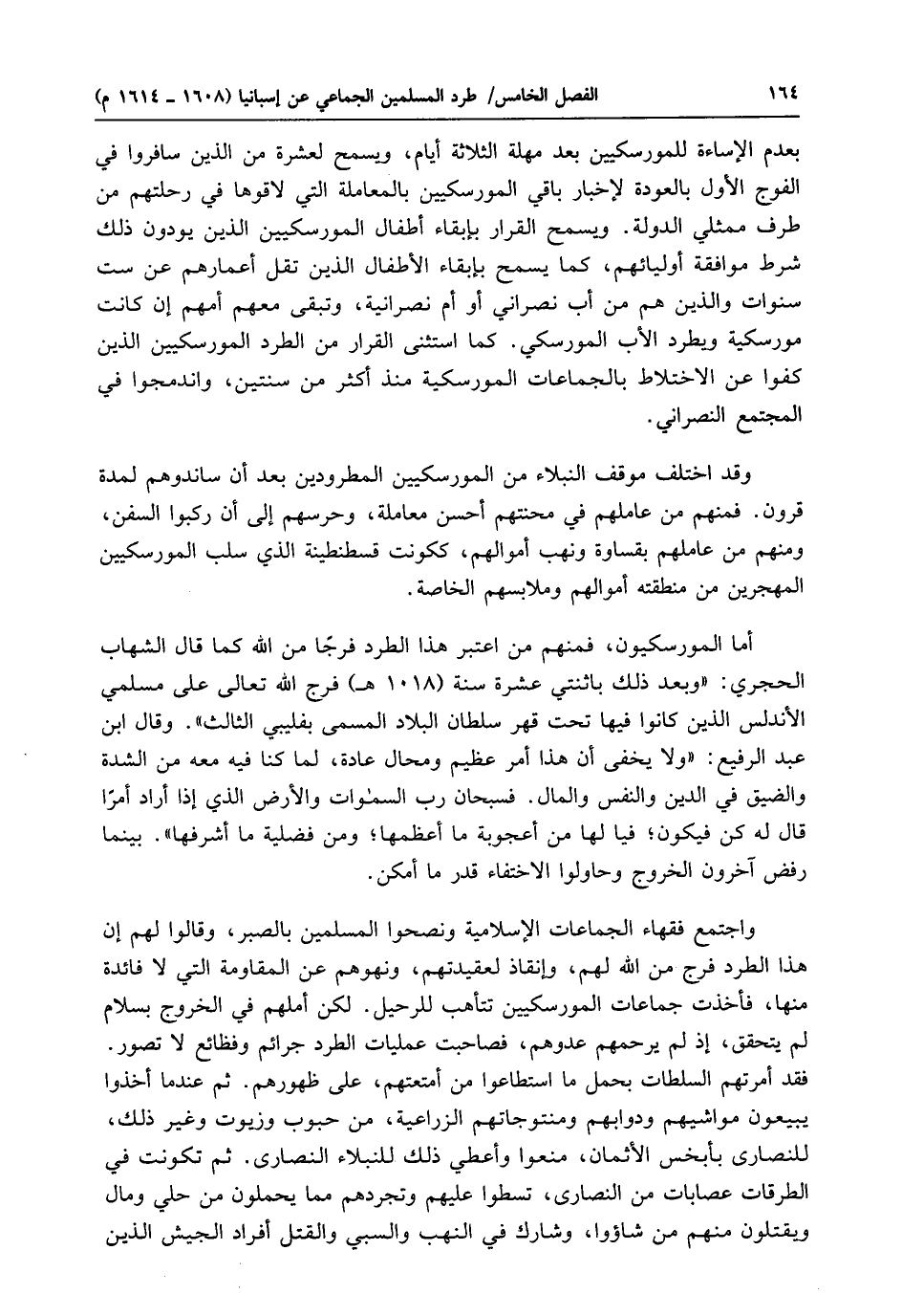 واجتمع فقهاء الجماعات الإسلامية ونصحوا المسلمين بالصبر، وقالوا لهم إن هذا الطرد فرج من الله لهم، وإنقاذ لعقيدتهم، ونهوهم عن المقاومة التي لا فائدة منها، فأخذت جماعات المورسكيين تتأهب للرحيل. لكن أملهم في الخروج بسلام لم يتحقق، إذ لم يرحمهم عدوهم، فصاحبت عمليات الطرد جرائم وفظائع لا تصور. فقد أمرتهم السلطات بحمل ما استطاعوا من أمتعتهم، على ظهورهم. ثم عندما أخذوا يبيعون مواشيهم ودوابهم ومنتوجاتهم الزراعية، من حبوب وزيوت وغير ذلك، للنصارى بأبخس الأثمان، منعوا وأعطي ذلك للنبلاء النصارى. ثم تكونت في الطرقات عصابات من النصارى، تسطوا عليهم وتجردهم مما يحملون من حلي ومال ويقتلون منهم من شاؤوا، وشارك في النهب والسبي والقتل أفراد الجيش الذين