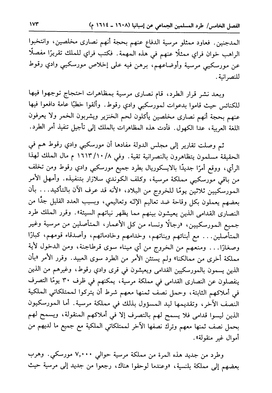 المدجنين. فعاود ممثلو مرسية الدفاع عنهم بحجة أنهم نصارى مخلصين، وانتخبوا الراهب خوان فراي ممثلاً عنهم في هذه المهمة. فكتب فراي للملك تقريرًا مفصلاً عن مورسكيي مرسية وأوضاعهم، برهن فيه على إخلاص مورسكيي وادي رقوط للنصرانية.