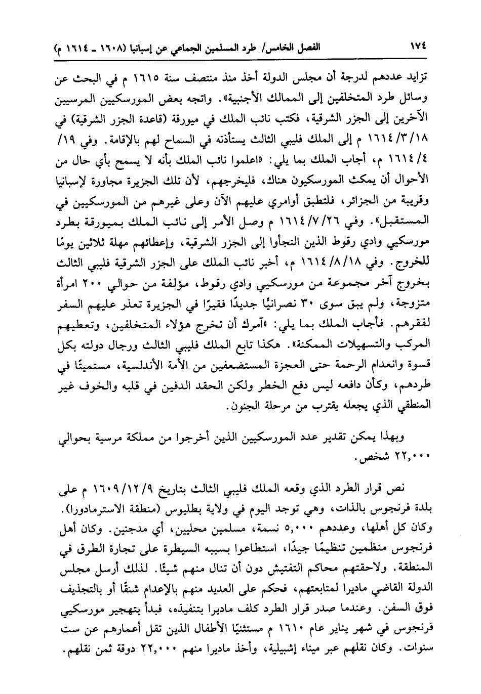 وبهذا يمكن تقدير عدد المورسكيين الذين أخرجوا من مملكة مرسية بحوالي 22.000 شخص.
