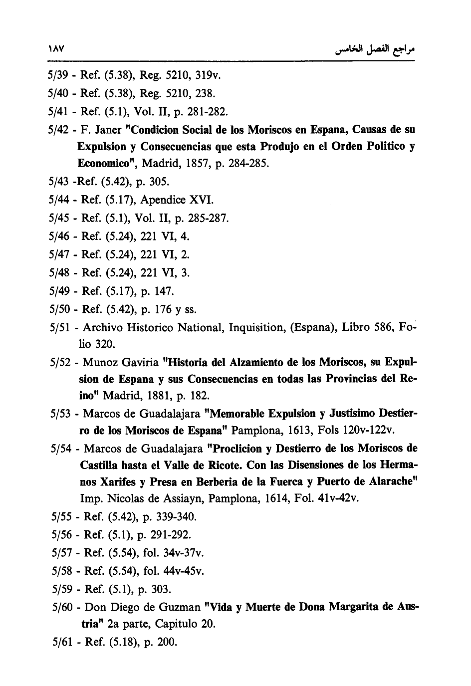 5 / 52 - Munoz Gaviria "Historia del Alzamiento de los Moriscos, su Expul- sion de Espana y sus Consecuencias en todas las Provincias del Re- ino" Madrid, 1881, p. 182.